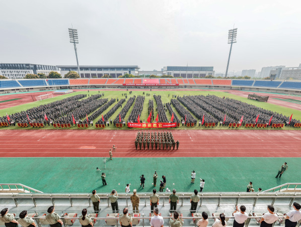 浙师大2025级新生军训暨国防教育教学成果展示杭州校区现场。浙师大融媒体中心 全瀚宇 摄