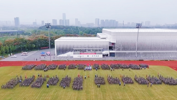 晨光微熹,金华校区东体育场上新生整齐列队。杭州校区新生亦身姿挺拔,伴随着庄严的国歌声,五星红旗冉冉升起,飘扬的旗帜下,是新生们坚定的目光,2025级学生军训成果展示正式开启。